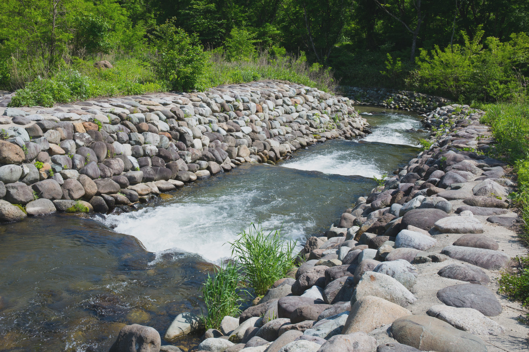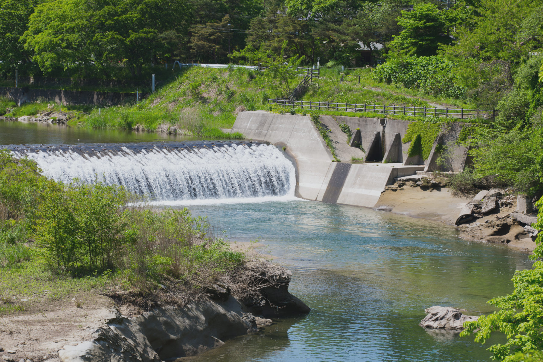 堰堤本体コンクリート約400m³、水叩きコンクリート約600m³、巨石張工約830m²ほか